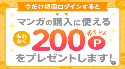 「読書のお時間ですby ameba」では、初回利用の方はログインするだけで、なんと200ポイント貰えます。1ポイント=1円で利用できます。