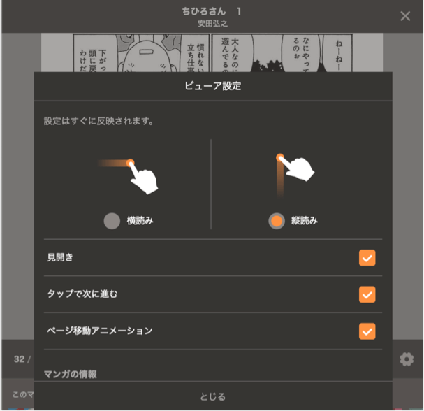 「読書のお時間ですby ameba」では、マンガを読む際に、縦読みか横読みを選択できます。これがなかなか使いやすい! 縦読み派の私には、嬉しいサービスでした▼