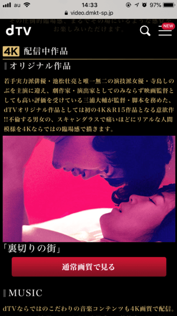 dTVでは、4K画質に対応しています。ただし、4K画質で再生ができる作品は一部の「4K画質対応作品」のみです。