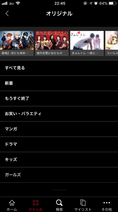 「オリジナル」のジャンルの中でも、「新着」「もうすぐ終了」「お笑い・バラエティ」等と表示されるので、作品を選ぶ道しるべになってくれます。