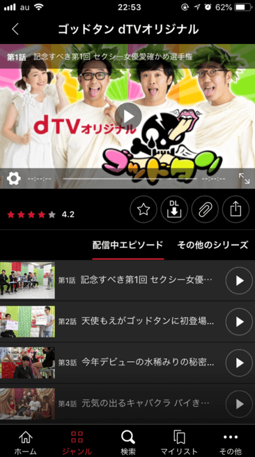 dTVアプリは、スマホに映像作品をダウンロードできます。