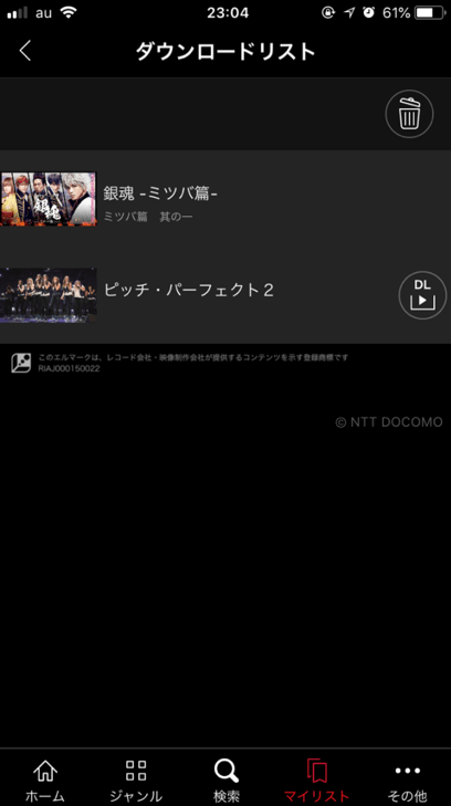 動画は、右上のゴミ箱マークでダウンロードリストから作品が削除できます▼