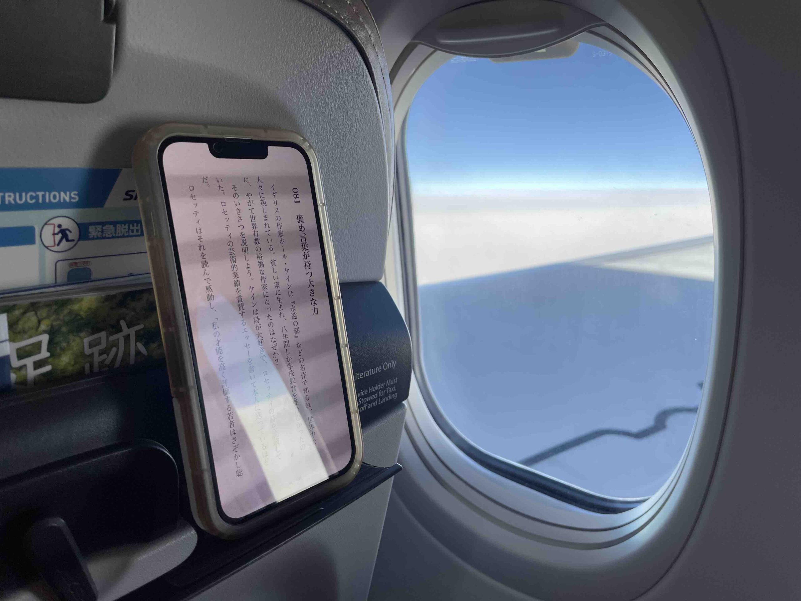 だから、機内での読書時間には電子書籍の方が向いているというわけです。