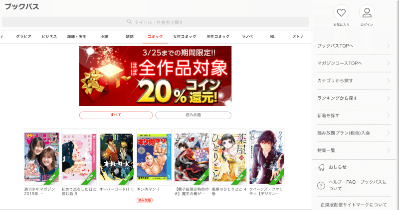 | サービス名 | 強いジャンル | キャンペーン | 書籍数 |