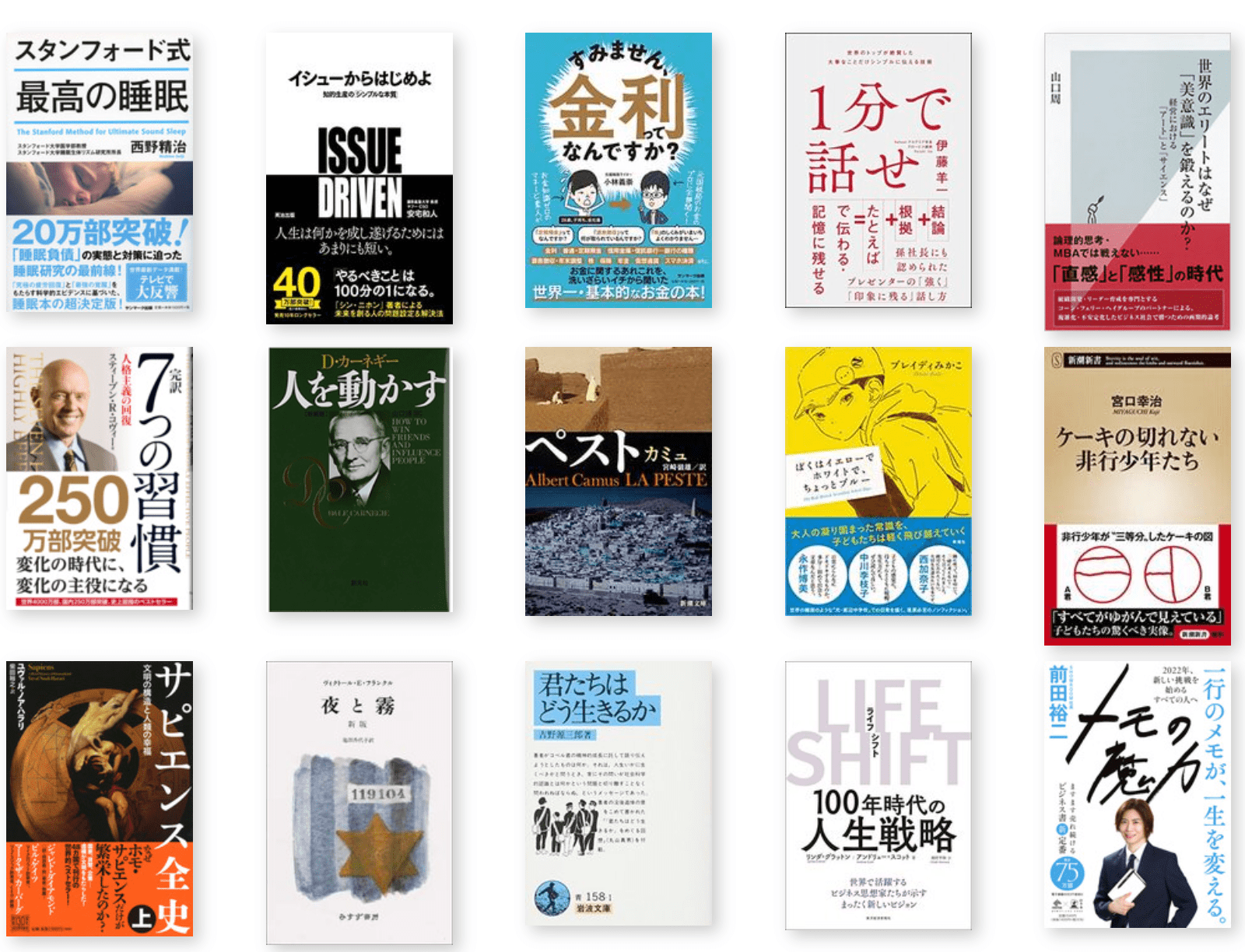『21世紀の資本(著 トマ・ピケティ)』『イシューからはじめよ(著 安宅和人)』『ワーク・シフト(著 リンダ・グラットン)』などの名著が並んでいます。