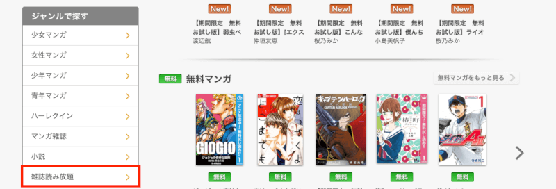 ③左側のメニューの中から、[雑誌読み放題]を選択してください▼