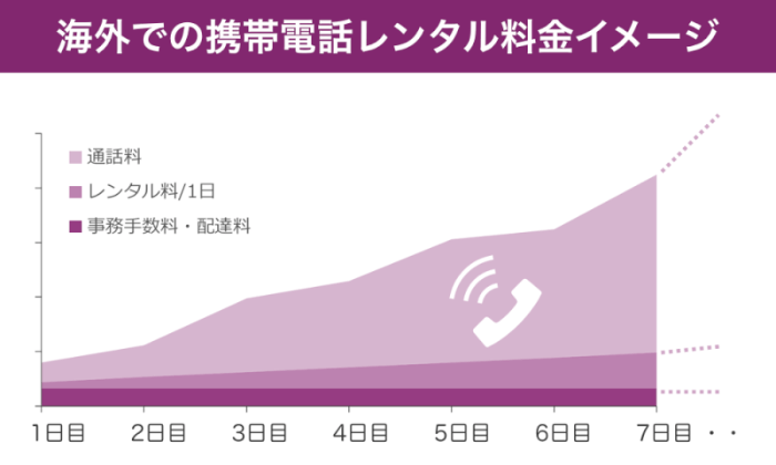 ここで、海外用の携帯電話レンタルの料金体系のイメージ図を見てみましょう。