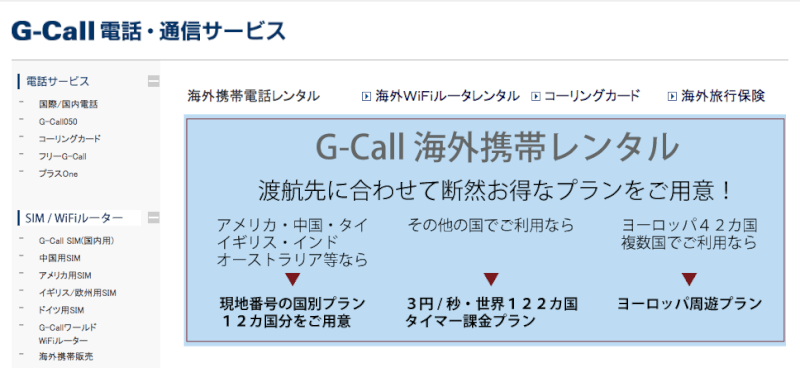 G-callは、通話料の安さが魅力の事業者です。現地の大手通信事業者の回線を使っているため、通話品質にも期待ができます。ただし、紛失時の補償オプションが用意されていないのが、残念です。