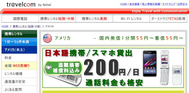 - レンタル料:200円/1日(ガラケー)、200円~/1日(スマホ)
