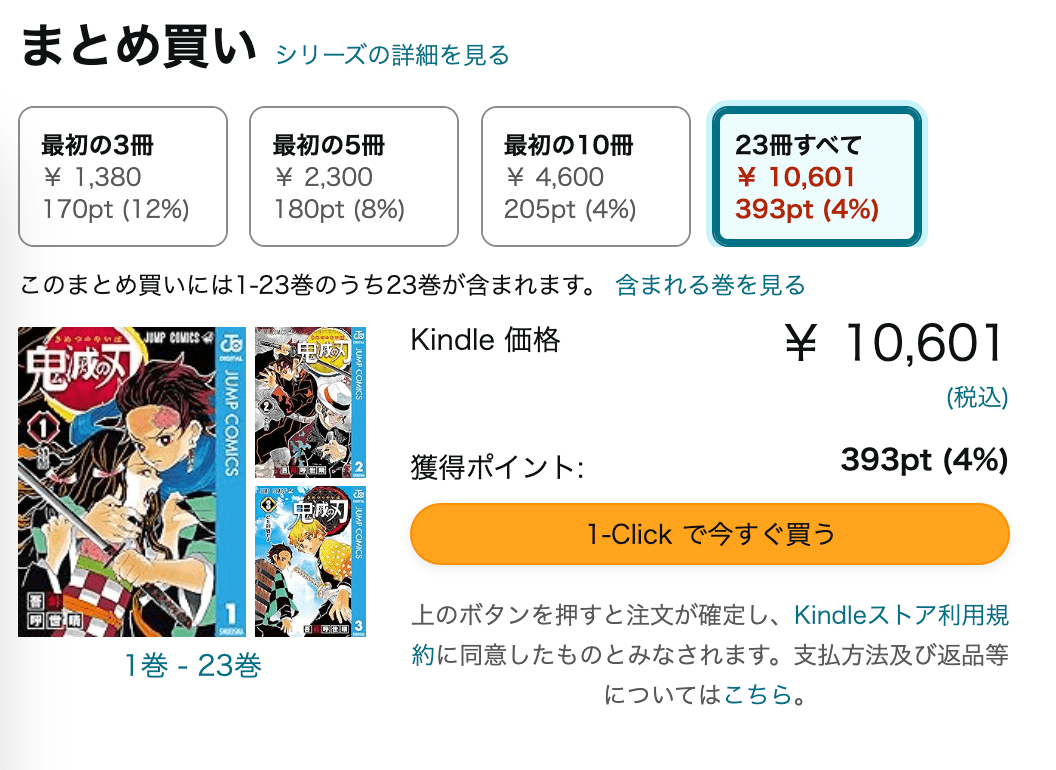 Amazon Kindleで電子コミック版「鬼滅の刃」全巻を買う