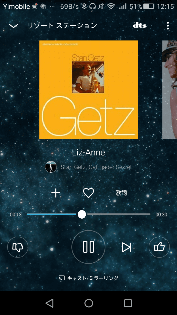 例えば、「リゾート」というキーワードでチャンネルをスタートした結果、Stan Getzの「Liz-Anne」を再生してくれました。テナーサックスがリゾート気分を演出してくれます。