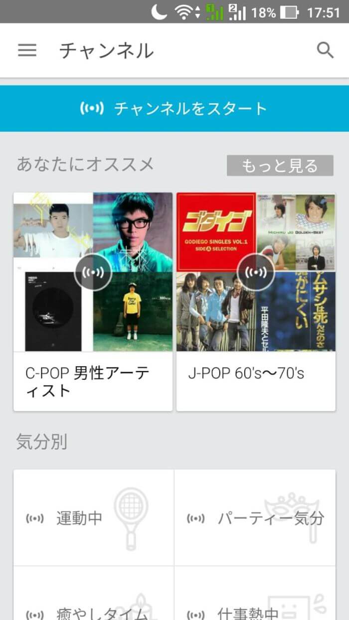 チャンネルとは、AIが過去の再生履歴からオススメの「1曲ずつ」再生してくれる機能です。