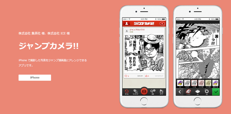 集英社の面白いところは、『ONE PIECE』や『NARUTO』といったビッグタイトルを無料で1日1話読める、別の専用アプリを開発しているところです。最初決めた時は本気で冗談かと思いました。その他「ジャンプカメラ‼」など、直接漫画とは関係ないサービスも展開しています。