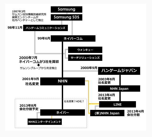 出典:本家も社名変更するみたいなので、日韓NHNの沿革を図にしてみた