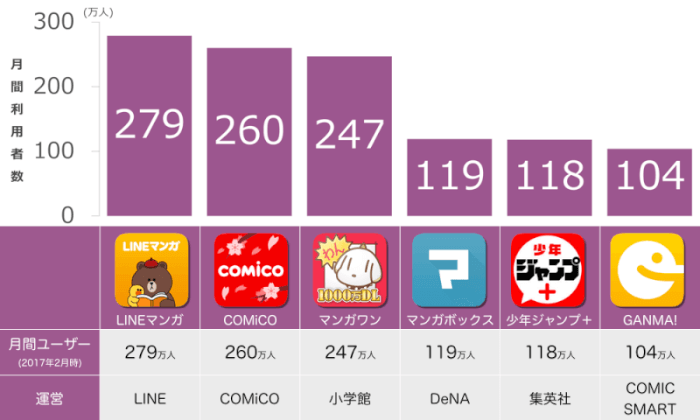 LINEというエンターテイメントプラットフォームと、電子書籍のプロが組み合わさることで生まれたLINEマンガが、業界トップの座にいるのは納得できる気がします。