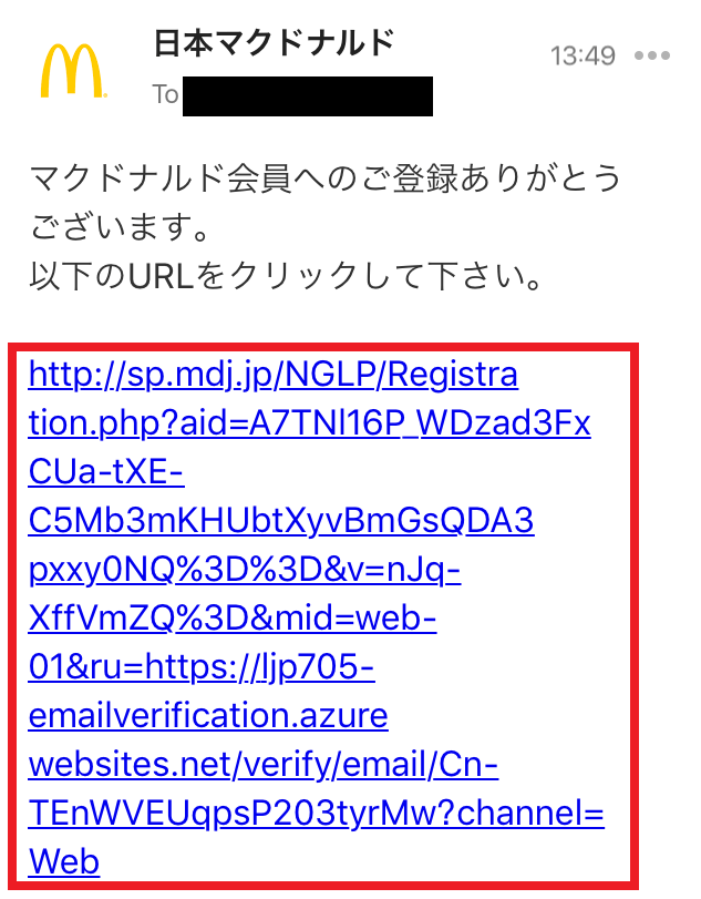(7)登録したメールアドレスから、送られてきたURLをクリックします▼