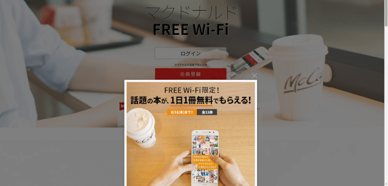 (3)ブラウザを開くと、マクドナルドWi-FiのHPが自動で開かれます▼