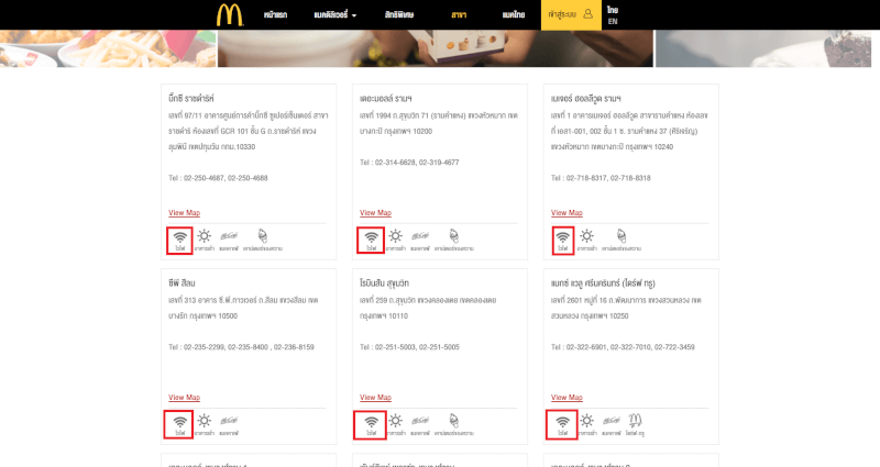 マクドナルドwifiが使える店舗は、「マクドナルドHP 店舗検索」で「FREE WiFi」をONにすると検索できます。