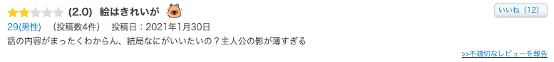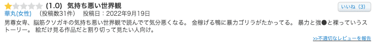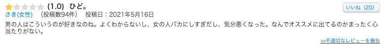 ネガティブなコメントには、「主人公が薄い」「男尊女卑」「女の人をバカにしている」など見つかりました。