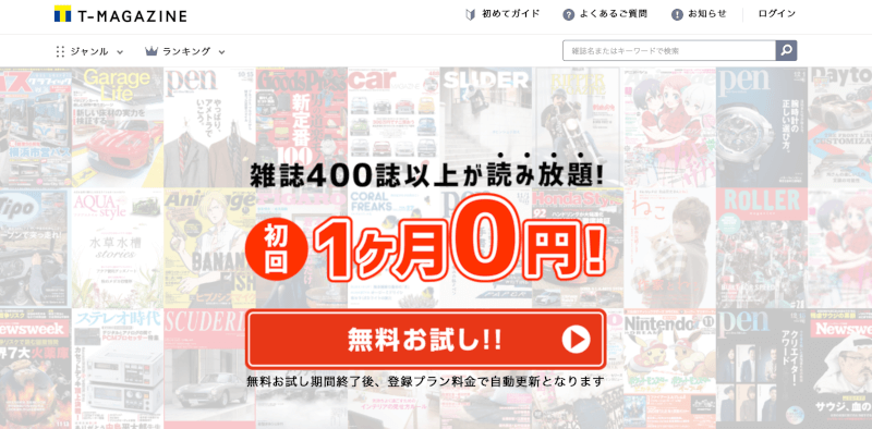 | Tマガジン | 400円 | 450誌 | 1カ月間無料 | Tポイント |