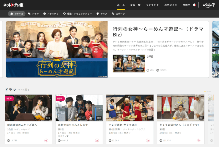 テレビ東京ビジネスオンデマンドは経済・ビジネス番組だけなので、テレ東のドラマが見たい場合はParaviがオススメです。