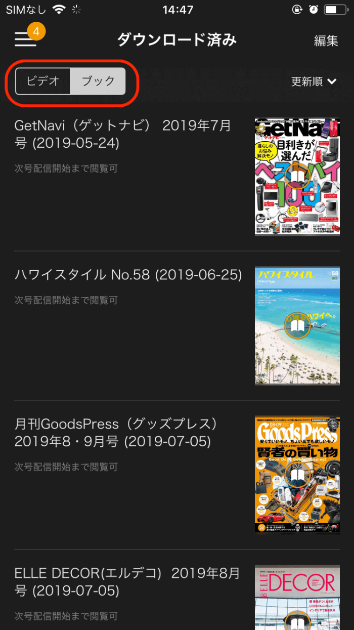 ダウンロード済みの画面に移動し、画面右上の「編集」をタップ▼
