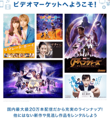 ビデオマーケットは、国内最大級の20万本の動画を扱っています。