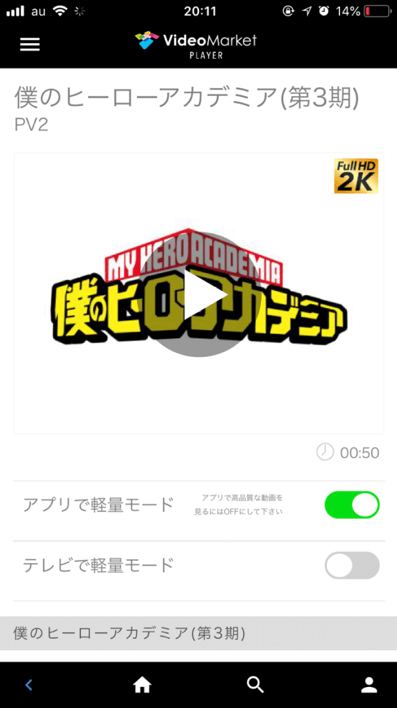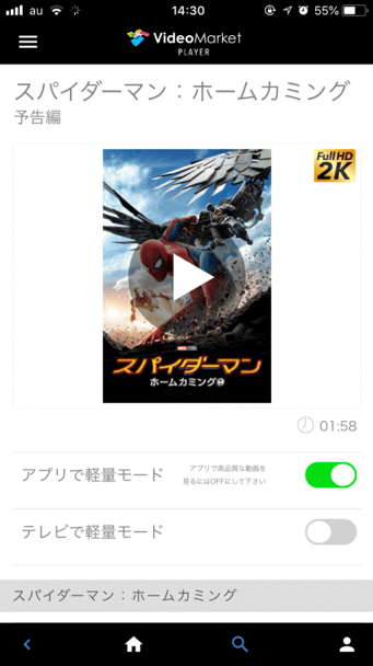 ビデオマーケットは、多くの作品で「Full HD/2K版」という、超高画質再生ができます。
