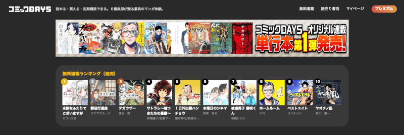 【コミックDAYS】6誌の漫画雑誌が読み放題のサービス